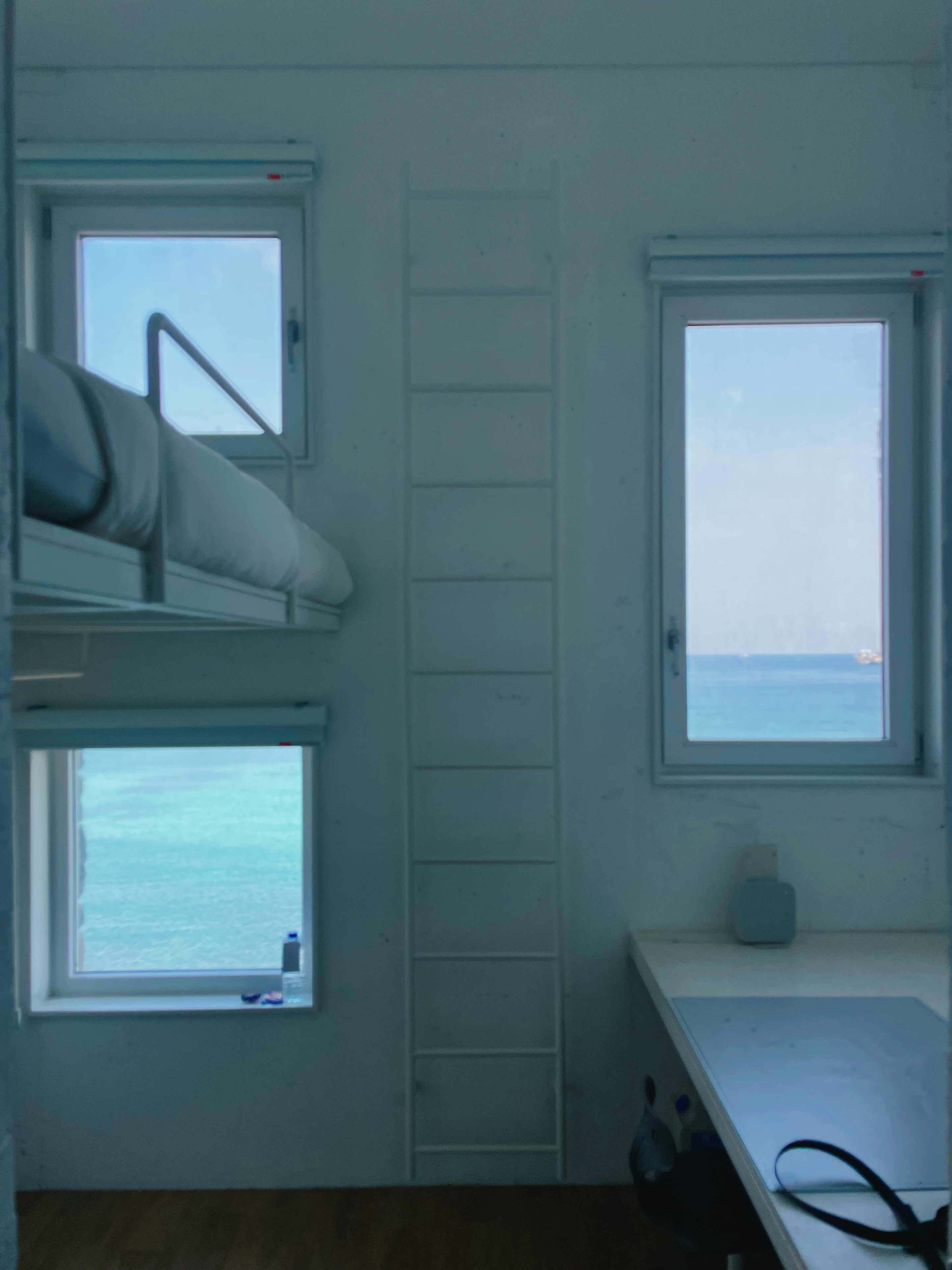 솔트 애월, 두 번째 방문이다. 혼자 묶을 때 꿀의 방이라고 생각한다. 넓은 책상과 이층 침대. 사각 프레임으로 나뉜 바다뷰의 창문과 자연을 사랑하는 숙소의 철학이 담긴 어메니티. 그러나 이번 여행에서는 숨의 이슈로 이 작고 높은 방이 자주 두려웠다. 이층 침대에 누우면 가슴이 천장에 닿을 듯이 뛰었다. 다음 날 아침 동네를 걷다가 약국에 들러 심신 안정제를 하나 사 먹었으나, 도움이 안됐다. 기적처럼 발견한 북카페의 책과 맥주가 약보다 나았다. 그렇게 하루를 견뎠다... .